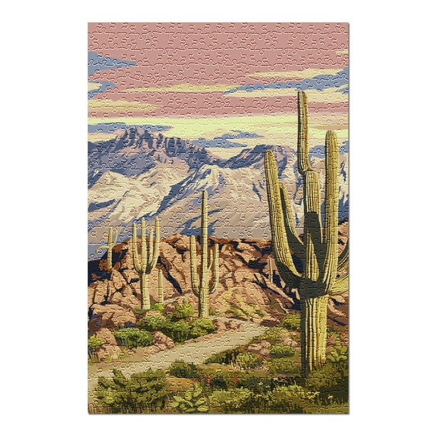 Desert Cactus Trail Scene At Sunset 500 Piece Challenging 19 X 27 Jigsaw Puzzle For Adults And Family Made In Usa Walmart Com